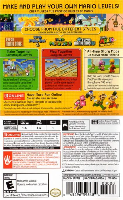 Mario fans of the world, unite! Now you can play, create, and share* the side-scrolling Super Mario courses of your dreams in the Super Mario Maker 2 game, available exclusively on the Nintendo Switch system! Dive into the single-player Story Mode and play built-in courses to rebuild Princess Peach's castle. Make your own courses, alone or together. And with a Nintendo Switch Online membership*, share your courses, access a near-endless supply made by others, enjoy online multiplayer*, and more!