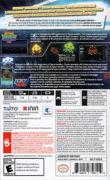 Team up with up to 3 friends to shoot down the invaders to clear the stages as fast as possible. This brand new 4-player-coop-experience offers new stages, gimmicks and new music written by TAITO's in-house sound team 'ZUNTATA'.