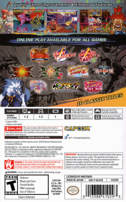 Capcom Fighting Collection features legends from Capcom's competitive arcade gaming history, faithfully reproduced to play just like they did back in the arcades!