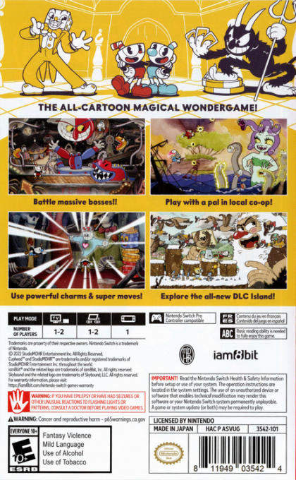 But that's not all! This rollicking retail edition includes the incredibly popular DLC expansion "The Delicious Last Course", offering players a bevy of additional bosses, wondrous weapons & charms, and all-new playable character Ms. Chalice. Add in a set of delightful pack-ins lovingly crafted by the artists at Studio MDHR, and you get quite simply the most complete Cuphead experience ever, perfect for long-time fans and newcomers alike!