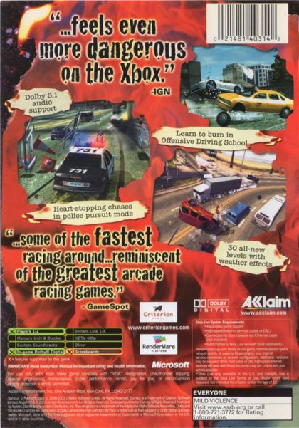 Xbox gamers are advised to leave their sanity at the starting grid as they prepare for the most mental adrenaline-pumping ride of their life! Burnout 2: Point of Impact is geared up to take pole position for best driving game on the console, taking the genre to new heights, with stunning graphics, white-knuckle foot-to-the-floor gameplay and heart-stopping auto-carnage.