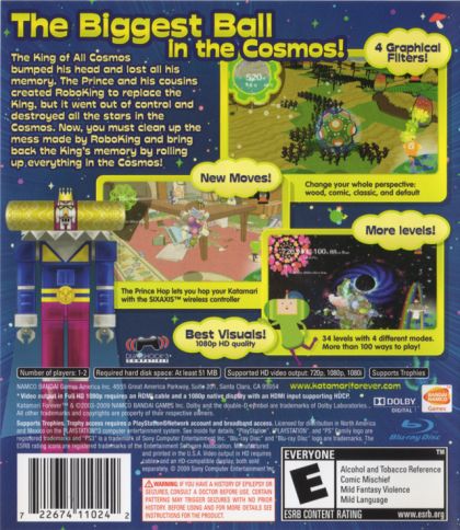 A terrible event has occurred causing the stars to disappear from the night sky and the King of All Cosmos to fall into a coma. The Prince must use his finely tuned Katamari rolling skills once more to re-create the absent celestial bodies, save his royal father and restore order to the Cosmos. Thumb tacks, sushi, cats, people, skyscrapers, ocean liners and continents ... nothing is safe as the Prince makes his way through the largest variety of stages ever in a single Katamari game.