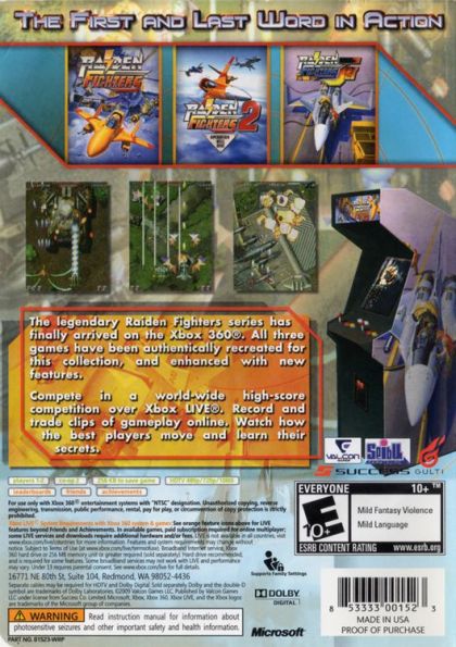 A compilation of all three video games in the Raiden Fighters series by Seibu Kaihatsu:the first Raiden Fighters, Raiden Fighters 2: Operation Hell Dive, and Raiden Fighters Jet