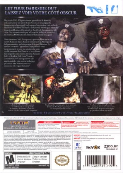Resident Evil: The Darkside Chronicles's story is based on Resident Evil 2 and includes the popular characters, Leon S Kenney and Claire Redfield. Its on-rails style gameplay and active camera will create a more immersive "Chronicles" survival experience. As in the last installment, this is a first-person game with extreme shooting gameplay and interactive pathways. Filling in many of the missing pieces of storyline that were not covered in the original "Umbrella Chronicles", Resident Evil: The Darkside Chronicles will give hardcore fans the chance to re-live some of the most classic moments of the Resident Evil franchise, while allowing new players to take advantage of the intense action-horror experience only possible on the Wii.