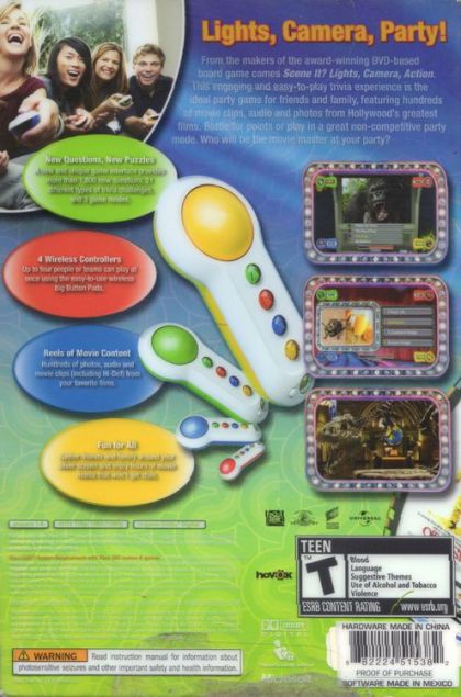 Scene It? Lights, Camera, Action brings friends and family together for a casual movie trivia game that everyone can play and enjoy. Using the simple and intuitive Big Button Pad, challenge your friends to see whose movie knowledge reigns supreme, with real content from your favorite movies and actors.
