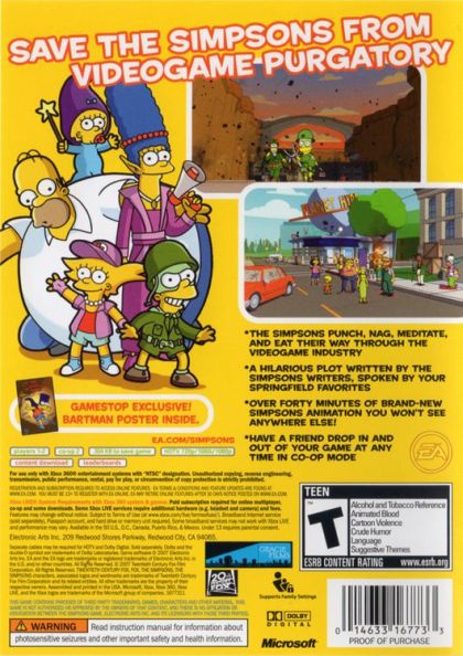 In The Simpsons Game, Homer, Marge, Bart, and Lisa use exciting, all-new powers to save Springfield from rising chaos. To help the Simpsons, gamers must journey through their home town (as well as vast worlds beyond!), vanquish an amazing array of villains, and fight their way through parodies of multiple popular games.