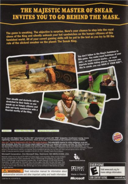 The game is Sneak King, and the object is surprise. Now's your chance to step into the royal shoes of the King himself as you silently unleash hot sandwiches on the hungry citizens of this famished world. All of your covert gaming skills will be put to the test as you take on the role of the slickest sneaker on the planet: The Sneak King. There's an art to sneaking up on someone and surprising them with a hot, delicious sandwich. You might not know that, but it's true. The average person might just knock on a door with sandwich in hand and yell "Surprise!" but something would be missing from the experience. That something is drama, mystery, finesse. And the King has it all in spades. Here's your chance to learn the King's magic. Step into his royals hose and learn the cunning stealth that elevates his surreptitious sandwich surprises to an art form. Sneak down alleys, roads, and sidewalks. Surprise unsuspecting burger lovers from inside barrels, pipes, and treehouses. The more you sneak, the more you will gain an appreciation for the methods of the true Sneak King.