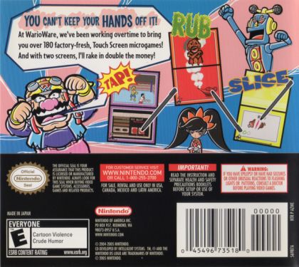 After falling into a manhole, Wario has discovered a totally new portable game system ... the Nintendo DS! With two screens, the maniacal game designer figures he can make twice as much money. So, he's enlisting the help of his bizarre crew to create the most demented dual-screen, touch-sensitive games ever devised.