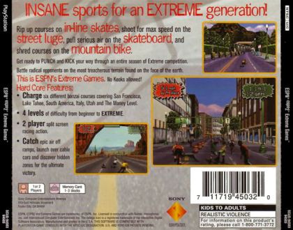 Insane Sports For An Extreme Generation! Rip up courses on in-line skates, shoot for max speed on the street luge, pull serious air on the skateboard, and shred courses on the mountain bike. Get ready to Punch and Kick your way through an entire season of Extreme competition. Battle radical opponents on the most treacherous terrain found on the face of the Earth. This is ESPN's Extreme Games.