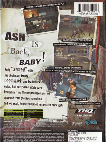 Developed with the full support of creators Sam Raimi, Robert Tapert, and Bruce Campbell, Evil Dead: A Fistful of Boomstick allows players to assume the role of Ash, the chainsaw-armed hero from the Evil Dead trilogy. Players will fend off hordes of Deadites with several weapons including the shovel, gatling gun, shotgun and chainsaw. Massive game environments include all new Evil Dead locations as players attempt to save the town of Dearborn from the influence of the Necromonicon ex Mortis ... the Book of the Dead. Evil Dead: A Fistful of Boomstick mixes the comedy and fun of a campy horror movie with intense combat missions for the most complete Evil Dead game yet.
