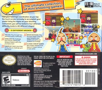 With stages from all three games in the series being included in the new portable collection, fans of the popular shooting series will have their hand-eye coordination tested, by using the DS stylus as their weapon of choice to shoot down everything from clay pigeons to aliens in the fun mini games of Point Blank DS. A fun and addicting game on the go, Point Blank DS will have players tap tap tapping their way to victory as they take on four different difficulty levels in over 40 different stages including Namco's popular coin-op arcade series digitized for the first time.