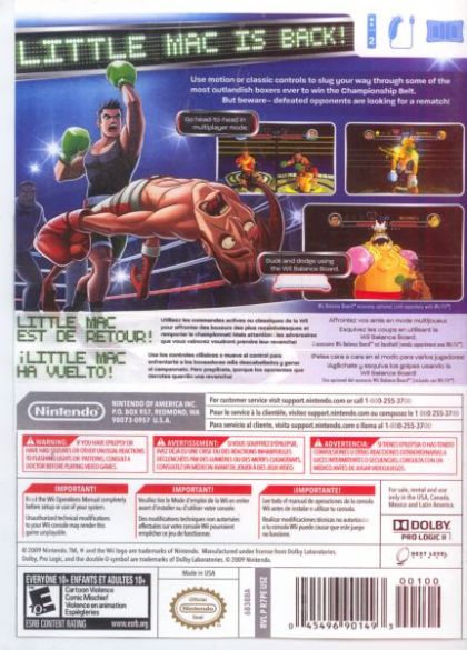 Little Mac is back! Everyone's favorite underdog from the 1980s joins the best of the original Punch-Out!! cast in a modern re-imagination of the series. Players will find familiar names like Glass Joe, King Hippo and trainer Doc Louis. These boxers come to life again in cel-shaded 3-D, complete with hilarious fighting animations and back stories that capture all the fun and flair of the original Punch-Out!! games.