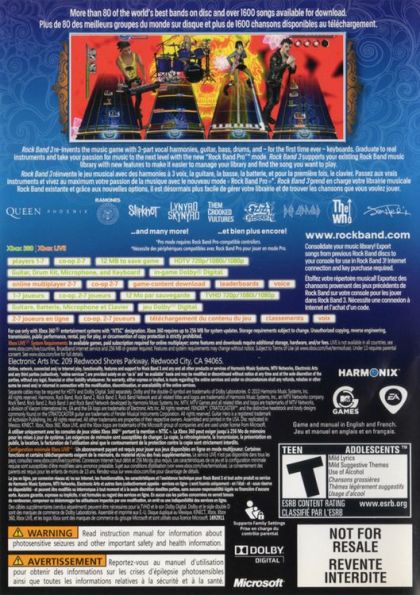 For the casual player, Rock Band 3 has great new party modes that allow fans to get rocking with friends quicker than ever, including party shuffle and persistent drop-in/drop-out and difficulty selection from any gameplay screen.For the serious player, the revamped Career Mode features 700+ goals and rewards and seamless leaderboard integration for an endlessly deep campaign experience. Rock Band 3 also adds a suite of social networking tools to the game so fans can engage friends and fellow rockers over Facebook, Twitter and more. Whether players want to jump in for a quick song or take their band to the top, Rock Band 3 has a mode for everyone.