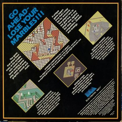 It drove you bonkers in the arcades. Now this mixed-up marble marathon is ready for your home computer! The challenge is to roll your marble to the hidden Goal Line on multiple treacherous 3-D raceways. Every corner's a cliffhanger. And every second counts! Each raceway is a unique maze of tricky terrain and marble menaces. Can you stay in control as you hunt for the goal? You'll teeter up, down and around narrow ramps and ridges. Sneak past hungry Marble Munchers. Battle nasty Steelies for the right of way. It's enough to make you lose your marbles! You'll be right on the edge to the very last edge!