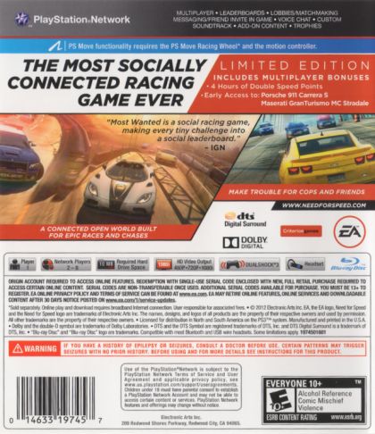 To be Most Wanted, you'll need to outrun the cops, outdrive your friends, and outsmart your rivals. With a relentless police force gunning to take you down, you'll need to make split second decisions. Use the open world to your advantage to find hiding spots, hit jumps and earn new vehicles to keep you one step ahead. In true Criterion Games fashion, your friends are at the heart of your experience. In an open world with no menus or lobbies, you'll be able to instantly challenge your friends and prove your driving skill in a variety of seamless multiplayer events. Your rivals will do everything they can to stop you from getting to the top. In this world, there can only be one Most Wanted.