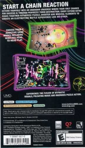 Every Extend Extra delivers an addictive gameplay experience through a fusion of arcade-style shooting action, cutting-edge music and visuals. Players evade enemy attacks and then use perfect timing to blast their foes in a colorful display of explosive chain reactions. The bigger the chain reaction results in the higher the score and the larger the rewards.