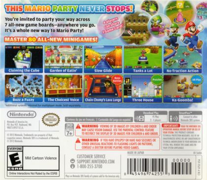 Step into a board game with a twist and face off against your opponents in madcap minigames! Whether you're playing solo or with friends, seven new game boards, 80 new minigames and a host of unique modes make the first Mario Party game on Nintendo 3DS the most exciting yet! Combining easy-to-grasp gameplay with Download Play* that allows four players to party together using just one Game Card, Mario Party: Island Tour really is a game that absolutely anyone can play!