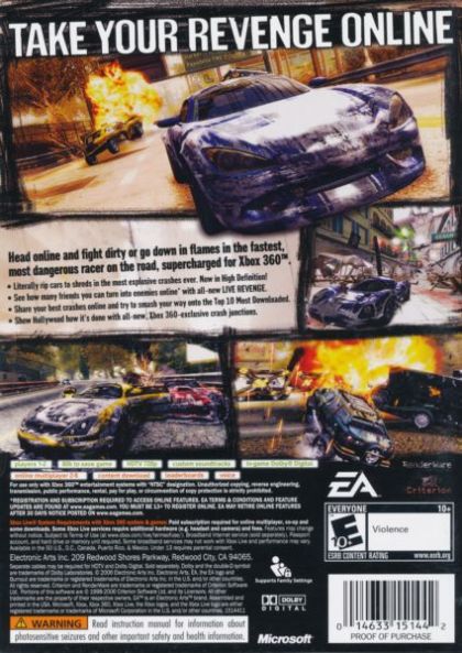 Burnout Revenge on next-gen still features multi-level tracks designed for fighting, wicked vertical takedowns, explosive crashbreakers, a huge array of gameplay modes and wide open crash junctions for epic crash sequences that put Hollywood to shame, Burnout Revenge redefines speed and aggression for the ultimate in vehicular combat.