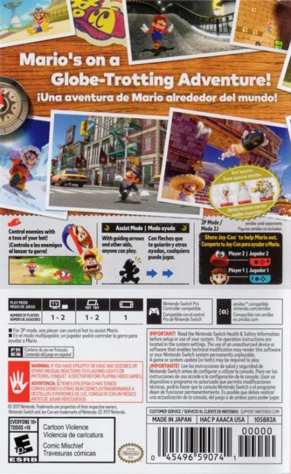 Join Mario on a massive, globe-trotting 3D adventure and use his incredible new abilities to collect Moons so you can power up your airship, the Odyssey, and rescue Princess Peach from Bowser's wedding plans!