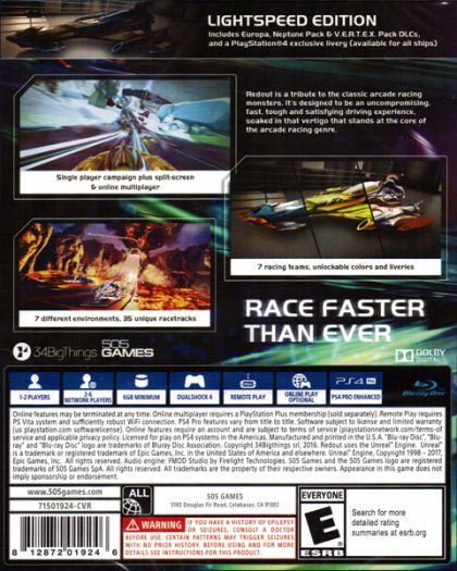 RedOut takes arcade racing enjoyed in such classics as F-Zero, WipeOut, and Rollcage to the next level with a fast, uncompromising, and satisfying driving experience on the Unreal 4 Engine. Hop in the driver's seat and go head to head with 12 friends as they speed through more than 25 stylish tracks to a heart pounding soundtrack.