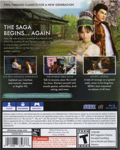Originally released for the Dreamcast in 2000 and 2001, Shenmue I & II is an open world action adventure combining jujitsu combat, investigative sleuthing, RPG elements, and memorable mini-games. It pioneered many aspects of modern gaming, including open world city exploration, and was the game that coined the Quick Time Event (QTE). It was one of the first games with a persistent open world, where day cycles to night, weather changes, shops open and close and NPCs go about their business all on their own schedules. Its engrossing epic story and living world created a generation of passionate fans, and the game consistently makes the list of "greatest games of all time".