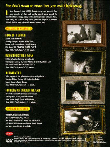 Like a dominatrix to a faithful clientele, we present you with four more episodes of sharp and joyfully painful lunacy aboard the Satellite of Love. Laugh, groan, writhe, and laugh again with Joel, Mike, Tom Servo, and Crow as they deliver jokes and judgement on cinema's difficult children. Your safe word? There is no safe word.