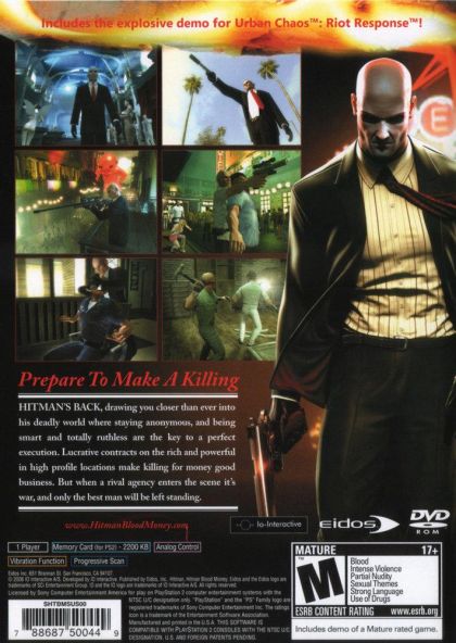 Hitman: Blood Money places gamers once again in the role of the world's greatest assassin, Agent 47. When assassins from Agent 47's contract killing firm, The ICA, are systematically eliminated in a series of hits, it seems a larger more powerful agency has entered the fray. Sensing that he may be the next target, Agent 47 travels to America, where he Prepares to Make a Killing.