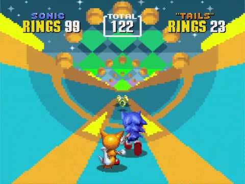 Super Speed! Sonic's back and better than ever. He's a blur in blue! A blaze of action! With his new Super Spin Dash. And a new, fabulous friend, "Tails" the Fox. You won't believe it 'til you see it. And when you play, you won't stop. Super Play! Defy gravity in hair-raising loop-de-loops. Grab Power Sneakers and race like lightning through the mazes. Dash in a dizzying whirl across corkscrew speedway. Bounce like a pinball through the bumpers and springs of the amazing Zones. All at break-neck speed! Super Power! Sonic's attitude is can-do. The mad scientist Dr. Robotnik is planning a world takeover. Sonic gets tough in the fight to save his friends and squash Robotnik for good!