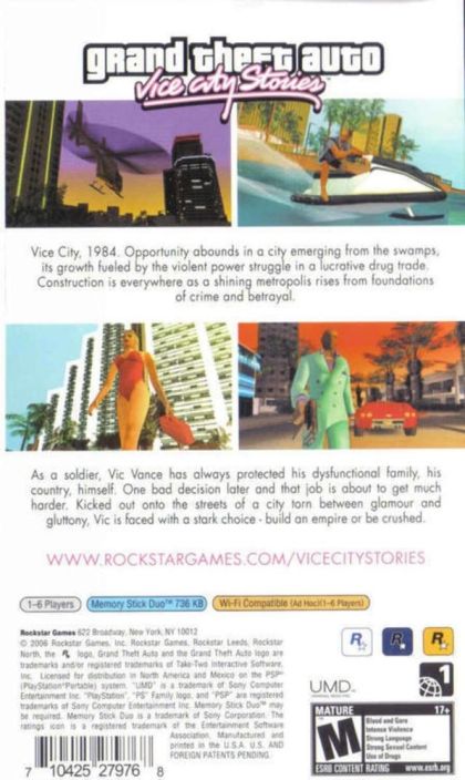 Grand Theft Auto: Vice City Stories is a new game in the Grand Theft Auto series with an entirely new storyline, new missions and gameplay that brings an unprecedented experience to mobile gaming. Grand Theft Auto: Vice City Stories features the interactive, open environment of Vice City with professional voice talent, a diverse soundtrack and high production values that have become trademarks of this landmark series.