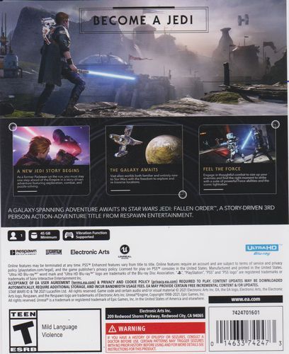 A galaxy-spanning adventure awaits in Star Wars Jedi: Fallen Order, a new third-person action-adventure title from Respawn Entertainment. This narratively driven, single-player game puts you in the role of a Jedi Padawan who narrowly escaped the purge of Order 66 following the events of Episode 3: Revenge of the Sith. On a quest to rebuild the Jedi Order, you must pick up the pieces of your shattered past to complete your training, develop new powerful Force abilities and master the art of the iconic lightsaber - all while staying one step ahead of the Empire and its deadly Inquisitors.
