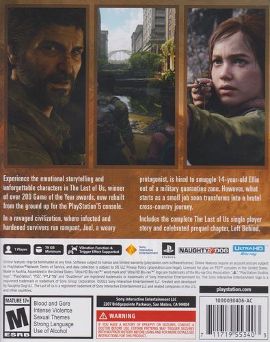 Includes the complete The Last of Us single-player story and celebrated prequel chapter, Left Behind, which explores the events that changed the lives of Ellie and her best friend Riley forever.