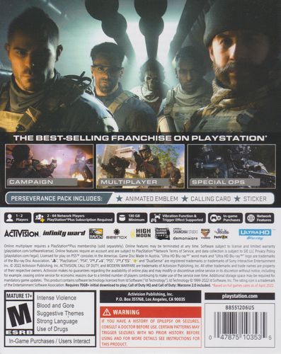 Infinity Ward will immerse fans in heart-pounding next-gen, state-of-the-art gameplay. Fight alongside friends in a truly immersive experience with stunningly realistic sound, lighting, and graphics that produce the most advanced Call of Duty in history. Modern Warfare II will feature a rebuilt, advanced AI system, enhanced rendering and photogrammetry technology, a new Gunsmith system, allowing for more customization than ever before, and a suite of other gameplay and graphical innovations that elevate the franchise to new heights. The future of the franchise is filled with trail blazing innovations and sets the foundation for next-generation gameplay.