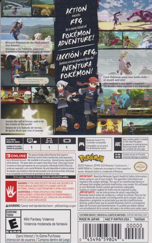 Get ready for a new kind of grand, Pokémon adventure in Pokémon Legends: Arceus, a brand new game from Game Freak that blends action and exploration with the RPG roots of the Pokémon series. Explore natural expanses to catch Pokémon by learning their behavior, sneaking up, and throwing a well-aimed Poké Ball. You can also toss the Poké Ball containing your ally Pokémon near a wild Pokémon to seamlessly enter battle. This new angle on Pokémon gameplay will deliver an immersive, personal experience brought to life by both Pokémon and humans.