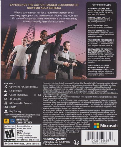 Playstation 5 and Xbox Series X|S players can enjoy new high-performance vehicle upgrades and improvements like the Career Builder as well as all GTA Online gameplay upgrades, expansions, and content released since launch, ready to enjoy solo or with friends. Pull off daring co-operative Heists, enter adrenaline-fueled Stunt Races, compete in unique Adversary Modes, or hang out in social spaces including nightclubs, arcades, penthouse parties, car meetups, and much more.