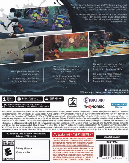 Originally envisioned by Warren Spector, reimagined by Purple Lamp, Disney Epic Mickey: Rebrushed employs state-of-the-art visuals and improved controls to breathe new life into a beloved classic. Experience new movement skills for Mickey, such as dash, ground pound and sprinting. The games compelling story makes it an unforgettable adventure for long-time fans and newcomers alike. Join Mickey Mouse and unravel the mysteries of Wasteland in this homage to Disney's legacy.