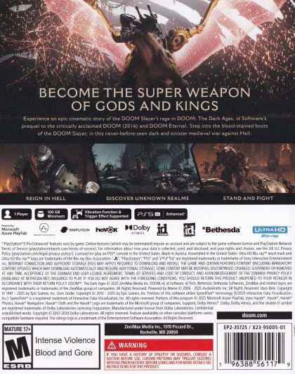 DOOM: The Dark Ages is the prequel to the critically acclaimed DOOM (2016) and DOOM Eternal that tells an epic cinematic story of the DOOM Slayers rage. Players will step into the blood-stained boots of the DOOM Slayer, in this never-before-seen dark and sinister medieval war against Hell.