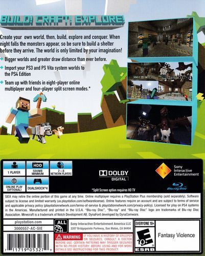 The Bedrock version of Minecraft is the unified version of the game that offers the same experience across all consoles. All that glorious, unified code means that you'll be playing the same game as your pals on Xbox One, Nintendo Switch, Windows 10, and mobile! So, yes – that means you get cross-play between those different consoles*. Not just that, PS4 players now also have access to the Minecraft Marketplace — a source for worlds, skins, mini-games, and mash up packs! So you're going to have not just a better Minecraft experience than ever before, but more Minecraft than ever.