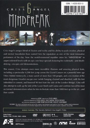 Criss Angel is on a quest to bring magic into our lives through extreme entertainment that he calls "mindfreak." He believes today's magicians are for the most part archaic and out of touch with society. He plans to change that with amazing feats, including being set ablaze for 46 seconds with very little protection and levitating people right on the street to death-defying escapes and even more slight-of-hand acts.