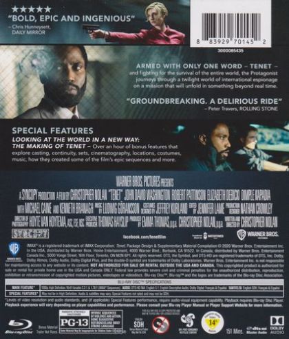 Armed with only one word - Tenet - and fighting for the survival of the entire world, the Protagonist journeys through a twilight world of international espionage on a mission that will unfold in something beyond real time.