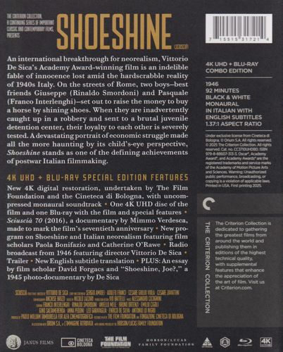 Two shoeshine boys in postwar Rome, Italy save up to buy a horse, but their involvement as dupes in a burglary lands them in juvenile prison; the experience take a devastating toll on their friendship.