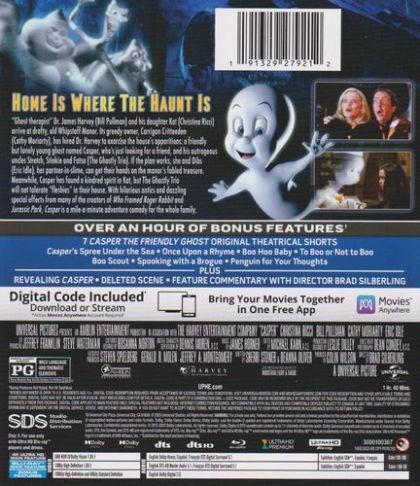 Casper is a kind young ghost who peacefully haunts a mansion in Maine. When specialist James Harvey arrives to communicate with Casper and his fellow spirits, he brings along his teenage daughter, Kat. Casper quickly falls in love with Kat, but their budding relationship is complicated not only by his transparent state, but also by his troublemaking apparition uncles and their mischievous antics.