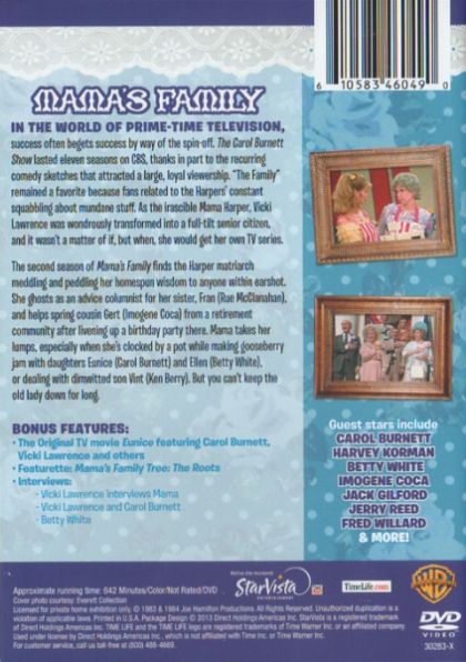 Mama's Family mined humor from a squabbling family in the Midwestern blue collar suburb of Raytown. The noisy clan was headed by Mama, a buxom, gray-haired widow with sharp opinions and a sharper tongue who shared her small house with her high-strung sister Fran, a journalist for a local paper. Mama's lazy, dimwitted son, Vint, a locksmith by trade, moved in at the start of the series with his troublesome teenage children, Buzz and Sonja, after his wife run off to become a Las Vegas show-girl. Much to Mama's disgust, Vint soon took up with the flirtatious neighbor Naomi. The two where married in early 1983, and Naomi moved in too. Further uproar was caused by the periodic visits from Mama's two married daughter's, the foul mouthed Eunice and the snobbish Ellen. Ed was Eunice's Dolt of a husband. In the Fall of 86 Mama's Family returned to TV in first-run syndication. Fran had recently passed (Rue McClanahan was now starring in The Golden Girls) and Ed and Eunice had moved to Flor