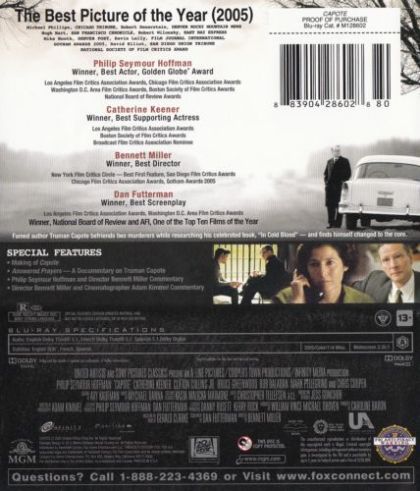 Capote is the biographical film about writer Truman Capote and his assignment for The New Yorker to write the non-fiction book In Cold Blood. Philip Seymour Hoffman won an Oscar for Best Actor for his portrayal of Capote.