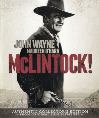 McLintock! is a 1963 comedy Western starring John Wayne and Maureen O'Hara, and loosely based on Shakespeare's The Taming of the Shrew. The film is famous (or infamous) for its two spanking scenes, in which mother and daughter are each paddled with coal shovels: the daughter by her suitor, the mother by her estranged husband.