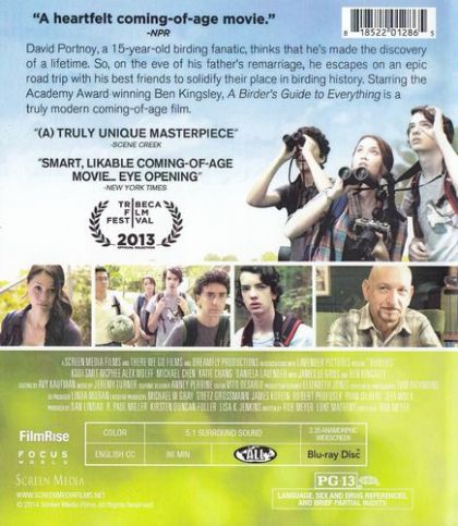 David Portnoy, a 15-year-old birding fanatic, thinks that he's made the discovery of a lifetime. So, on the eve of his father's remarriage, he escapes on an epic road trip with his best friends to solidify their place in birding history.