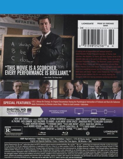 Glengarry Glen Ross, follows the lives of four unethical Chicago real estate agents who are prepared to go to any lengths (legal or illegal) to unload undesirable real estate on unwilling prospective buyers.