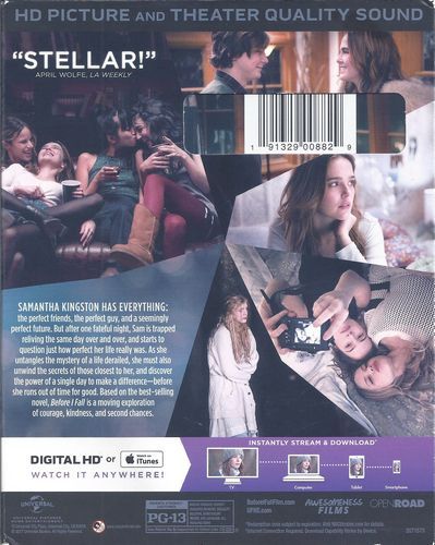 Samantha Kingston has everything. Then, everything changes. After one fateful night, she wakes up with no future at all. Trapped into reliving the same day over and over, she begins to question just how perfect her life really was.
