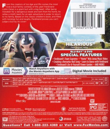 Ferdinand, a little bull, prefers sitting quietly under a cork tree just smelling the flowers versus jumping around, snorting, and butting heads with other bulls. As Ferdinand grows big and strong, his temperament remains mellow, but one day five men come to choose the "biggest, fastest, roughest bull" for the bullfights in Madrid and Ferdinand is mistakenly chosen. Based on the classic 1936 children's book by Munro Leaf.