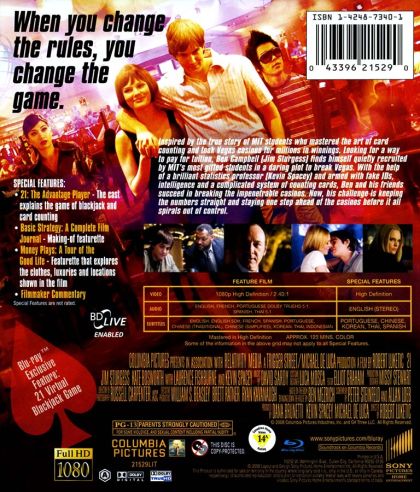 Mickey Rosa (Kevin Spacey) is an MIT mathematics professor who recruits the brightest minds on campus to his classes. Dr. Rosa secretly teaches the trade of counting cards to the brightest kids in the hopes of cashing in on the casinos in Las Vegas. Ben (Jim Sturgess) is a mathematical genius, who quickly learns the secrets of the trade. Ben trades in the rigor of academia and Boston for the glamour of Las Vegas. Ben's skill is evident when slowly wins a large amount of cash. Along with him as part of the card-counting team are several classmates; Jill (Kate Bosworth), Miles (Josh Gad), Fisher (Jacob Pitts), Choi (Aaron Yoo), Cameron (Sam Golzari) and Stemple (Spencer Garrett). The team employs an intricate, yet legal, system of signals in order to best determine which tables are statistically in favor of the player. The card-counters start to beat the casinos by getting huge pay outs during their weekend excursions. As the money grows, the stakes become higher, and the challenge becomes not only keeping the numbers straight, but staying one step ahead of the casino's enforcer, Cole Williams (Laurence Fishburne).