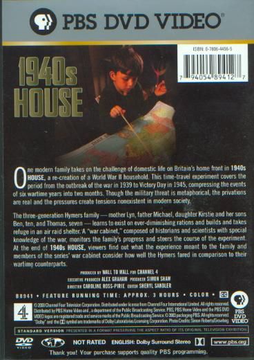 Assembled by the same team responsible for the reality series 1900 House and Frontier House, this three-episode endeavor challenges a 21st century British family to live under the same conditions experienced by their countrymen during the WWII years (1939-1945). Three generations of the Hymers family are crowded into an old-fashioned London flat, where they must endure such deprivations as food rationing and air-raid blackouts, as well as conduct their lives within the moral and cultural parameters of the early '40s. How well the Hymers clan fares under these restrictions is determined by a "war cabinet" made up of historians and sociologists. Originally broadcast in the U.K. in January of 2001, all three episodes of 1940s House were later broadcast on a single evening by America's PBS network. — Hal Erickson